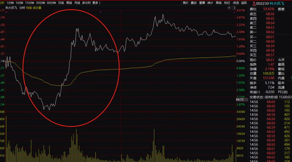 “每日资本论”注意到,在经过8个交易日的连续调整后,7月6日,科大讯飞股份有限公司(下称,科大讯飞)股价开始止跌企稳。尤其是7月7日,科大讯飞分时图上显示半小时左右时间,其股价从下跌快速拉起,期间幅度接近了8%。如此大的力度也显示出主力的做多意愿。