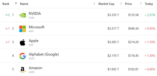 新王登基!英伟达一举超越微软苹果 成为全球市值最高公司