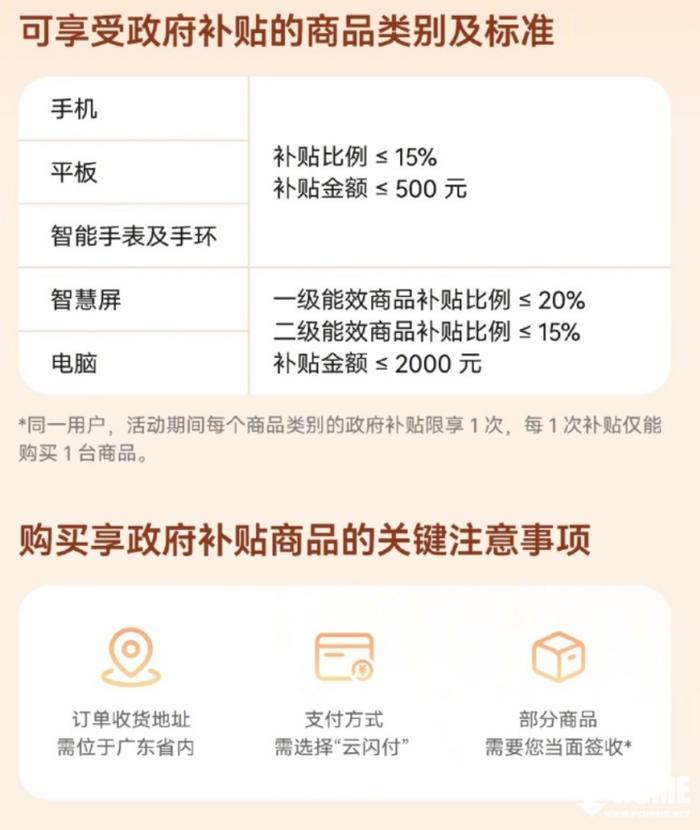 华为商城App上线广东国补 平板、智能手表至高补贴15%