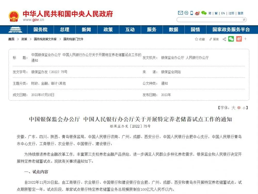 今年7月,银保监会和央行联合发布了《关于开展特定养老储蓄试点工作的通知》(以下简称《通知》),启动特定养老储蓄试点。
