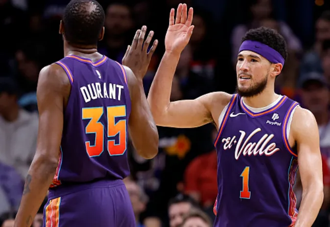 渐入佳境!布克再度连线杜兰特反击飞扣炸筐