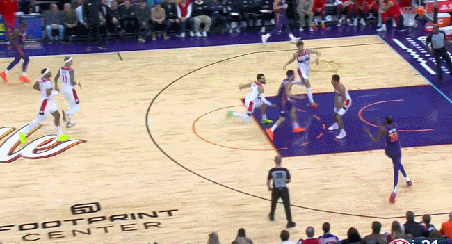 NBA常规赛:太阳逆转擒奇才 布克27+8杜兰特28+5+5送制胜暴扣