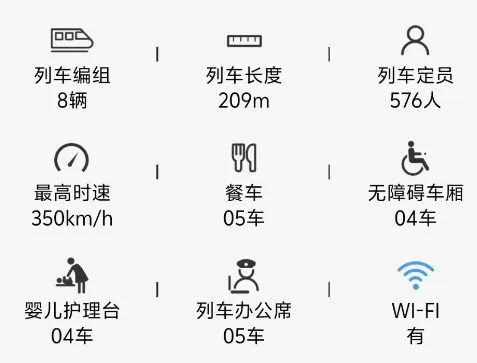 包括像是否有高铁 WiFi、无障碍车厢位置、婴儿护理台位置等信息。