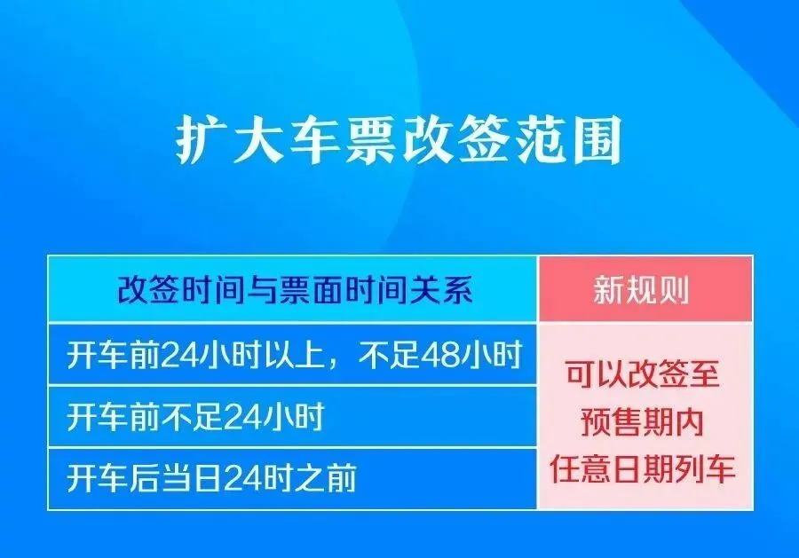 具体表现为:在开车前及开车后当日内,均可改签预售期内任意日期列车。