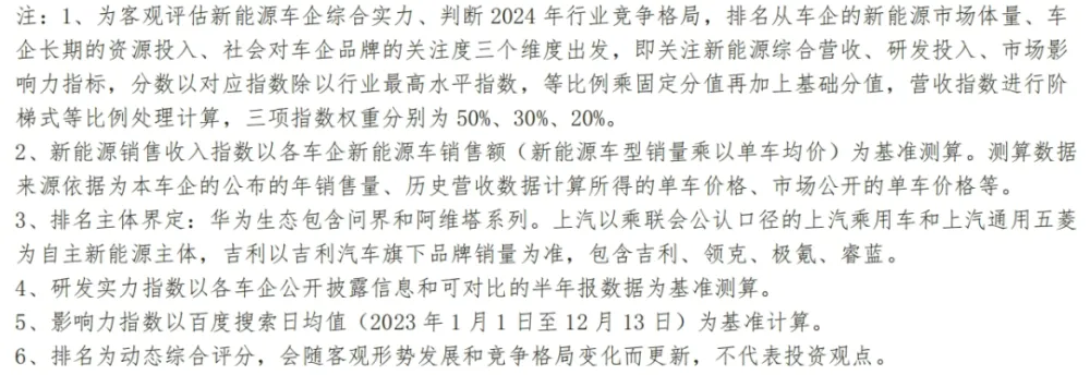 5、拼突破规模瓶颈、车型盈利、持续投入能力。2024年新能源赛道进入下半场,对前沿技术研发和车型创新投入要求更高,重视规模效应、降本增效、维持较高的毛利率是车企可持续发展的先决条件。