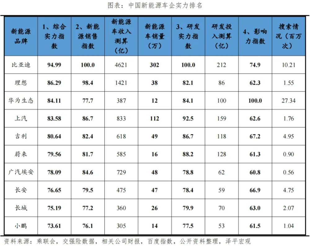 中国新能源车企十强榜
