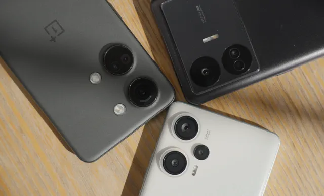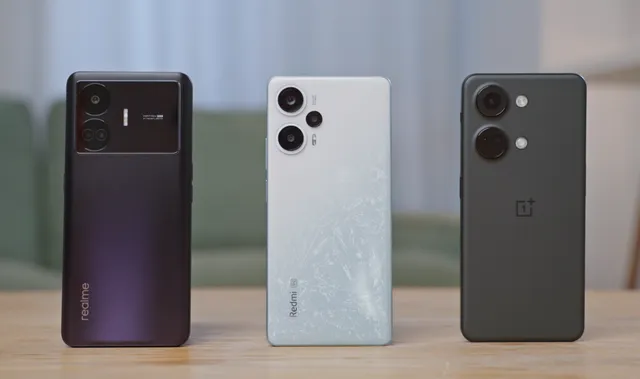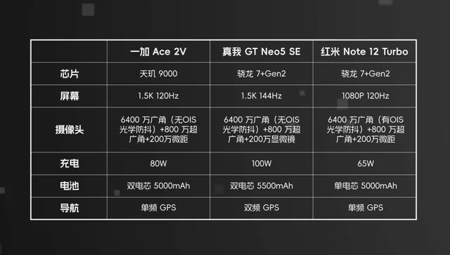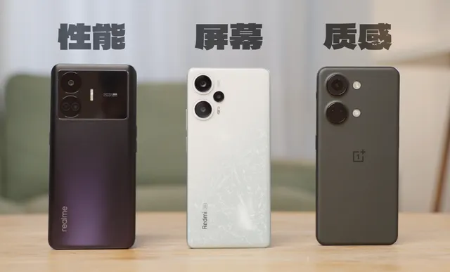 而且说实话,本来我没想着买红米,最初我看中反而是一加 ACE 2v 这台手机(从左到右:真我 GT Neo5 SE、红米 Note 12 Turbo、一加 ACE 2v)。