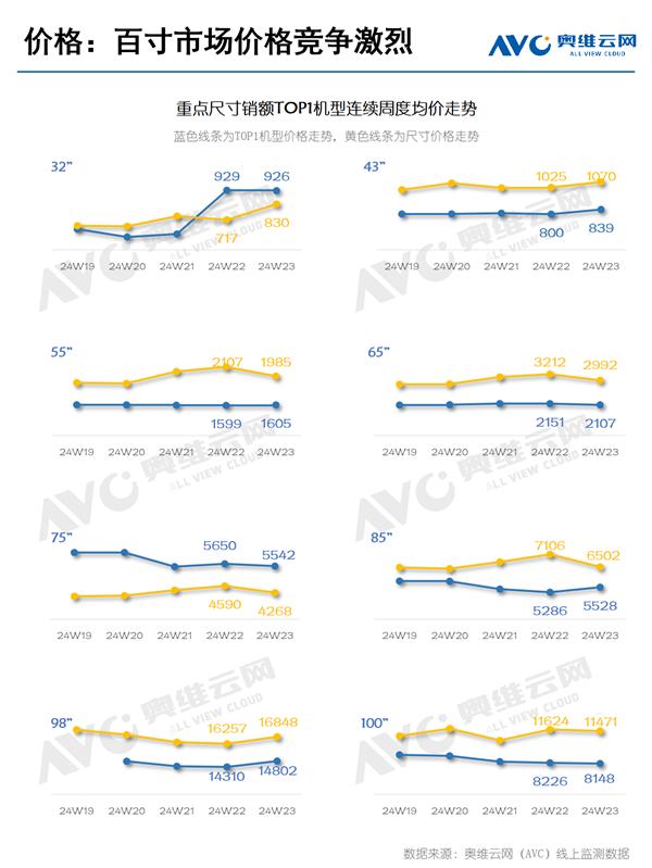 然而,75寸以上的大屏幕电视零售额已经占到整个市场的44%,并且实现了8.1%的同比增长,这包括了86寸、98寸和100寸等更大的尺寸段。
