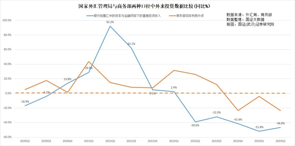 第三、外汇管理局扣紧的2023年二季度结汇的外商直接投资同比下降46.8%