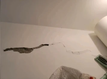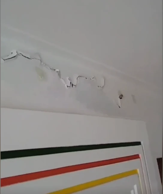 还有业主晒出自家的开裂情况:墙皮脱落,醒目的缝隙分布在家里的围墙上。